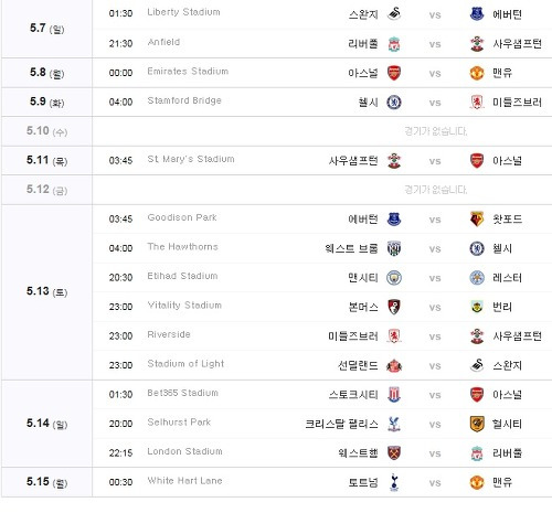 프리미어리그 일정 - í리미ì´ë¦¬ê·¸ì¤ê³ í리미ì´ë¦¬ê·¸ì¤ê³ë¶í° 경기ì ë³´ ì¼ì ë¼ì¸ì 모ë íê³³ìì íì¸ - 프리미어리그 일정 확인, 가격 확인 그리고 영국 축구표 예매도 이곳에서!